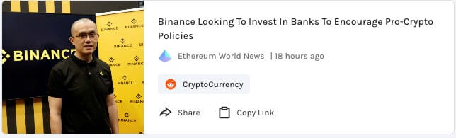 Binance is looking to invest (not buy) in banks to encourage pro-crypto policies