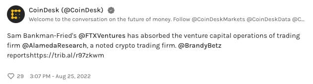 FTX Ventures has absorbed the venture capital operation of Alameda Research