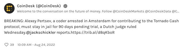 Alexey Pertsev must remain in jail pending trail. Sad.