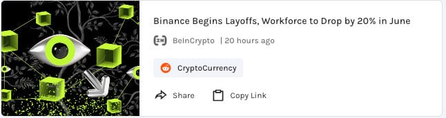 - Binance lays off 20% of work force, cites "re-evaluating talent"