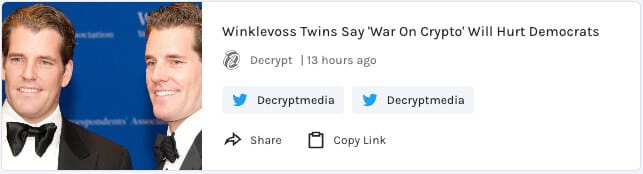 Winklevoss Twins say the Democrat’s “war on crypto” will hurt them in the election