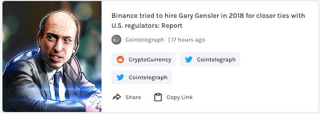 A couple alarming stories out on Binance. 1) Texts messages from CZ document their plan to avoid US Scrutiny and 2) they tried to hire Gary Gensler in 2018
