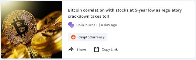 Bitcoin's correlation with the stock market is at a five-year low, which is standard because stocks are pumping