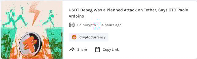 Tether CTO Paolo Ardoino says the USDT Depeg was a planned attack