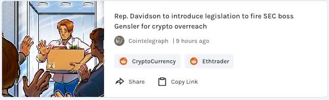 Rep Davidson to introduce legislation to get rid of SEC boss Gensler for his attack on crypto