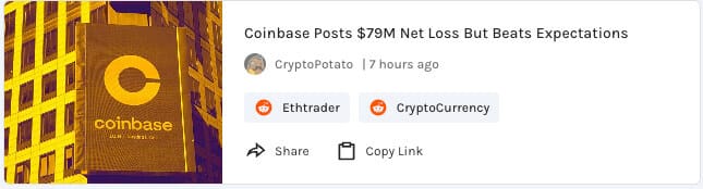 Coinbase earnings were yesterday, they posted a $79M net loss, but numbers were better than expectations