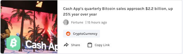 Cash App quarterly Bitcoins sales approaching $2.2B, up over 25% from a year ago. This is bullish, right?