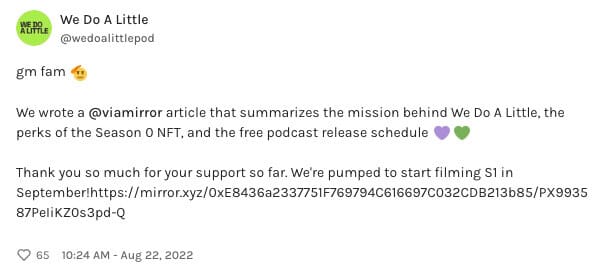 Cets on Creck (Ranked 9 NFT Sentiment): A lot of hype on SolanaOtherdeed (Ranked 27 NFT Sentiment): Random airdrop for OtherdeedGorillae Gang (Ranked 27 NFT Sentiment): Affiliate marketing program coming soon