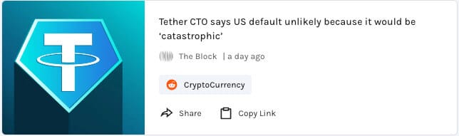 Tether CTO says US default unlikely due to how big of a catastrophe it would be worldwide