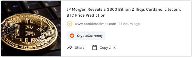 JP Morgan released a Bitcoin price prediction of $45,000, meaning the market cap would need to increase by $300B. States Zilliqa, Cardano, and Litecoin would be altcoins that could see a position benefit from a BTC price increase