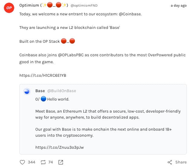 Coinbase announces Base, their layer 2, being built by OP Stack