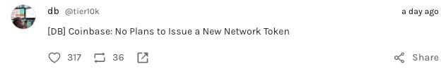 Speculation that Coinbase would launch a new Base token, but they quickly put that to rest