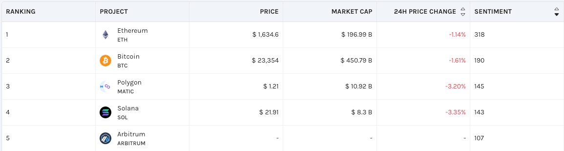 This is the ranking snapshot at time of writing. It is updated hourly on the Twitter sentiment ranking page