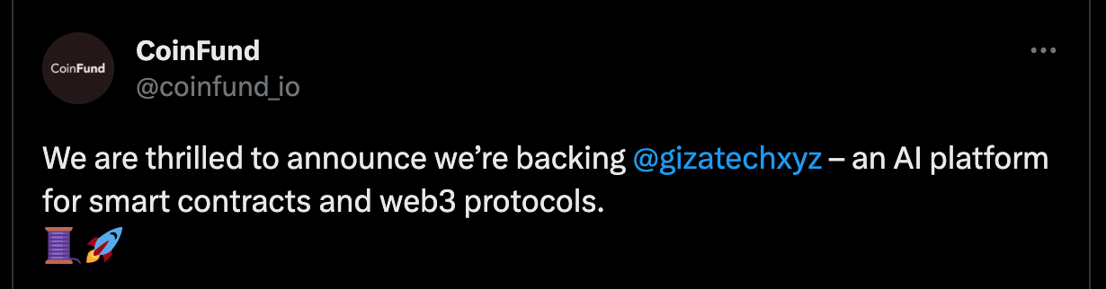 Coinfund backs Giza’s pre-seed round, which works on giving smart contracts ability to work with ML models.