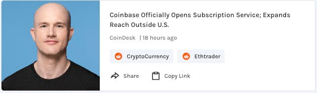 - Coinbase opens subscription service