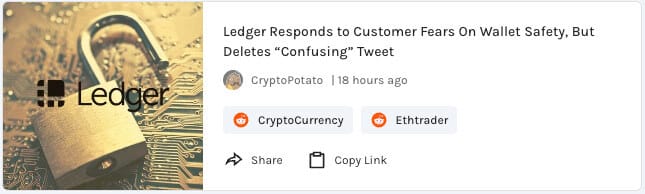 Ledger responds to customers’ fears on wallet safety, deleted “confusing” tweet