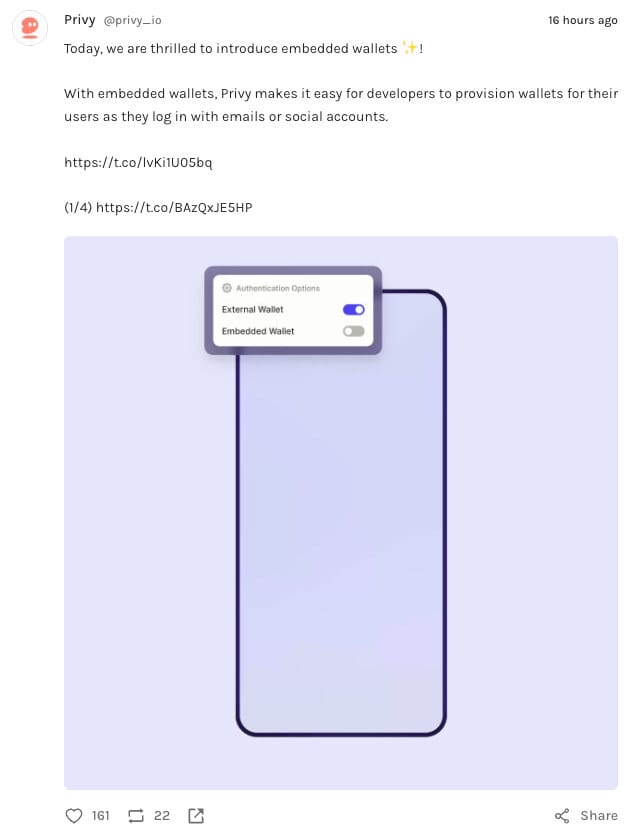 Privy introduces embedded wallets which gives users the ability to login with emails or social accounts