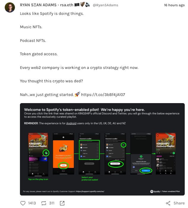 Web2 slowly transitioning to Web3 with Spotify leading the way