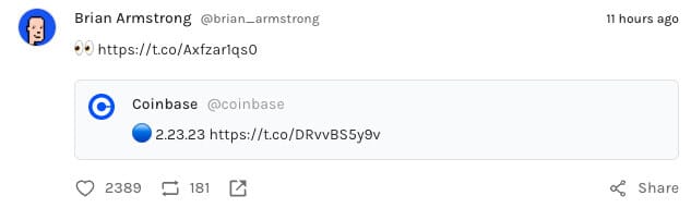 Coinbase teasing an announcement for today, some speculate it’s their L2 while others are speculating it’s their new NFT marketplace (marketplace is a joke)