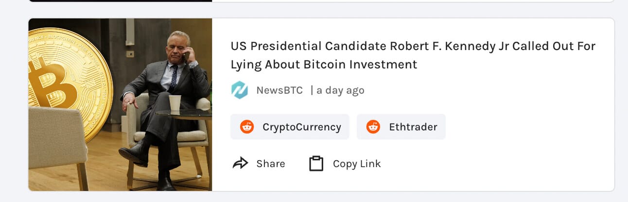 US Presidential Candidate Robert F. Kennedy Jr Called Out For Lying About Bitcoin Investment