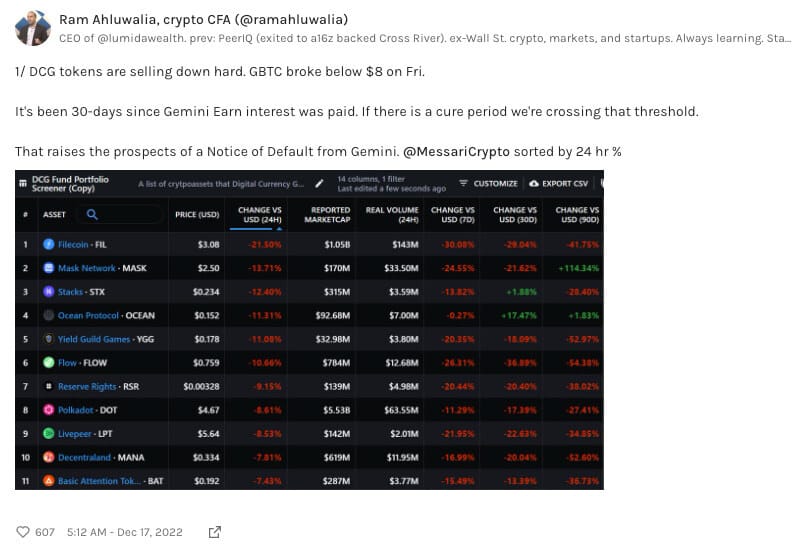 Lots of rumors (and facts verified by onchain tx) about DCG selling off assets at a major discount.