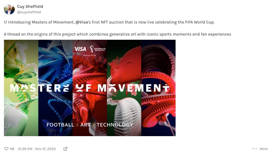 Visa introduces Masters of Movement, their first NFT auction celebrating FIFA World Cup