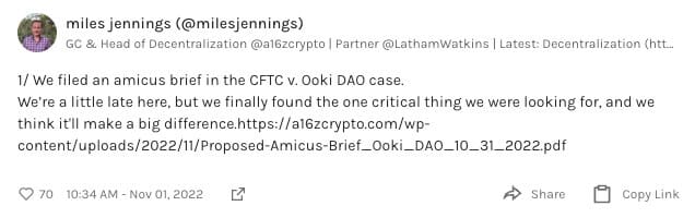 a16z files an amicus brief in the CFTC v Ooki DAO case