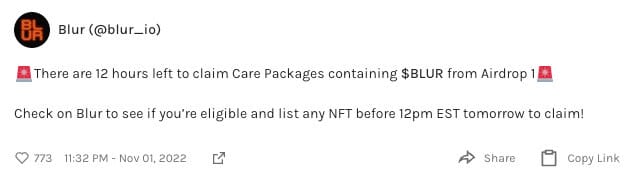 Blur airdrop ends today, make sure you have checked to see if you are eligible for the airdrop