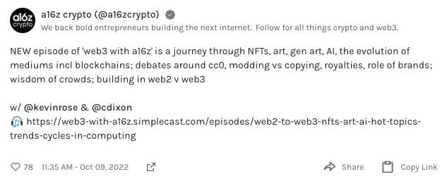 Web3 with a16z releases a new episode where they dive into all things NFT and Art