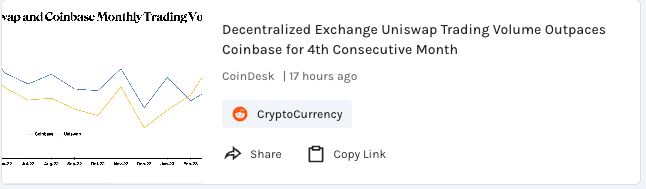 Uniswap outpaces Coinbase for the 4th consecutive month on volume. That is not surprising given the Meme coin craze
