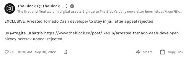 Alexey Pertsev, Tornado Cash dev, remains in jail after appeal rejected