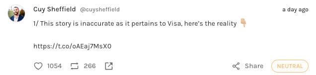 There was a report that Visa and Mastercard cancelled crypto push giving all regulatory and current market issues but Cuy Sheffield, Head of Crypto at Visa, said they are merely pausing it