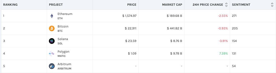 Projects Sentiment Rankings: