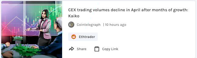 CEX trading volumes declined in April after months of growth. This could be misleading as many users removed most of their funds from CEX after FTX