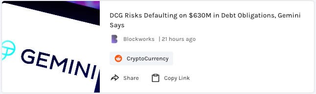 - Gemini says DCG at risk on defaulting on $630M debt obligations