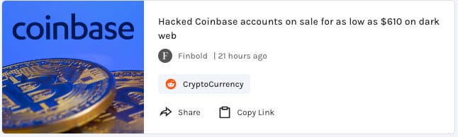 Hackers are selling Coinbase accounts on the dark web for as low as $610