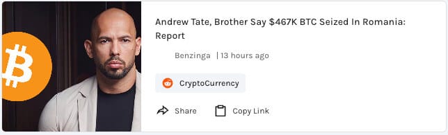 The Tate brothers had $467k of Bitcoin seized in a Romania raid
