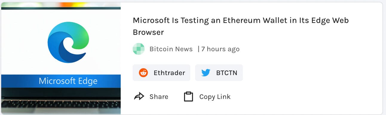 Microsoft is testing an Ethereum Wallet for it’s Edge Web Browser