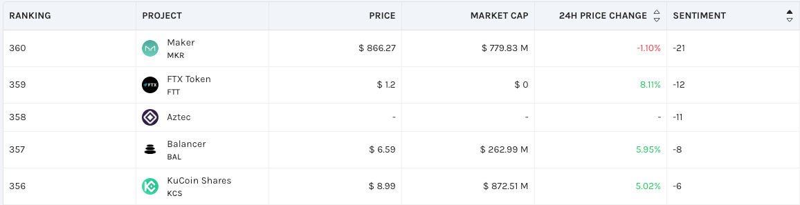 This is the ranking snapshot at time of writing. It is updated hourly on the Twitter sentiment ranking page