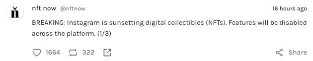 Instagram sunsetting NFT feature, guess I never knew they actually enabled it