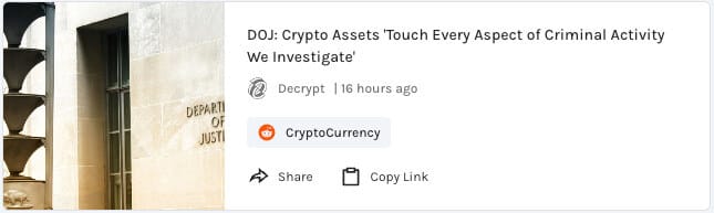 DOJ says crypto assets touch every aspect of criminal activity they investigate, yeah… and so does cash