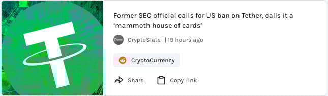 Former SEC official calls for US to ban Tether. Those of you on Cryptotwitter know Bitfinex’d rejoice with this headline