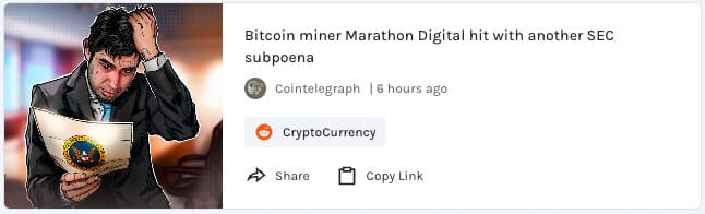 Another crypto company receives a subpoena from the SEC. This time it’s Marathon Digital