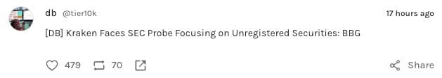 - Kraken facing SEC probe, Coinbase CEO hears rumors about SEC and staking in US