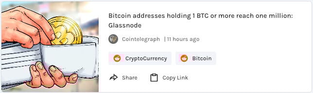 Bitcoin addresses holding at least 1 BTC or more cross one million addresses