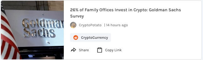A surprising statistic, 26% of family offices invest in crypto according to a recent Goldman Sachs survey