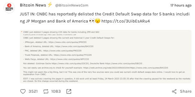 Things that make you go hmmm… CNBC reportedly delists Credit Default Swap data for major banks