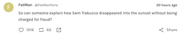 FatMan brings up a really great point… where is Sam Trabucco and why is no one taking about him