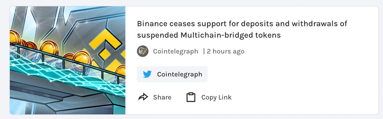 Binance Ceases Support for Deposits and Withdrawals of Suspended Multichain-bridged Tokens