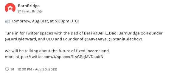Defi_Dad, BarnBridge and Aave linked up on Twitter Spaces to talk about BarnBridge v2 on AAVE v3
